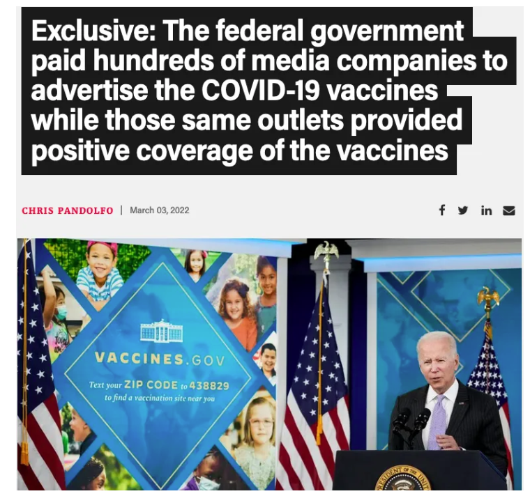 Article in Blaze media about government paying media companies to bias the news. Executive summary I was the first person in history to get the truth bombs about vaccine injury/death rates out on Fox. Everyone before me who attempted this has been censored. I now know why they have been censored. The reason I succeeded […]