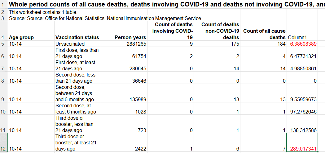 Steven Kirsch - Jul 15th 2022 3:12am EDT UH OH!!! The UK government now has a huge problem. A triply vaxxed child is 45 times more likely to die than an unvaccinated child. That makes the vaccine the biggest child killer ever deployed by any government and makes COVID deaths look like rounding error (45X vs. 0.05X). Executive summary I was inspired by […]