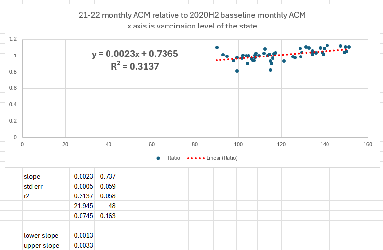 Executive summary If you wanted to show the American public that the COVID vaccines saved lives, the easiest proof is to plot each state (or county) based on its vaccination rate (x axis) and its change in mortality from pre-vaccination baseline on the y-axis. I did this. The slope is positive. This means that more […]