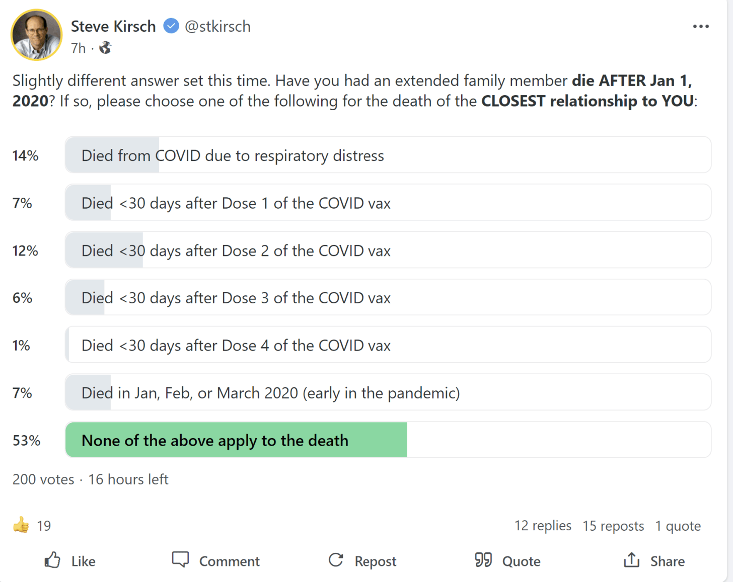 Steven Kirsch - May 16th 2022 12:04am EDT The pre-vax survey is here. It’s similar to the other one, but much simpler. The purpose is to compare the death profile for those who died before the vaccines rolled out to the death profile of those after the vaccines rolled out. This way we can determine for certain whether the excess deaths in 2021 […]
