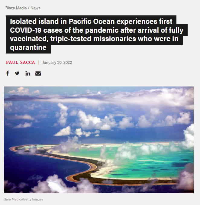 Steven Kirsch - Jan 31st 2022 2:01pm EST Containment is not an option The story of Kiribati is the poster-child for why popular containment policies like lockdowns, social distancing, masks, vaccines, and testing are futile. Check out this article which describes what happened in Kiribati: First, everyone had to be fully vaccinated against COVID-19. Second, passengers had to test negative for COVID-19 three […]