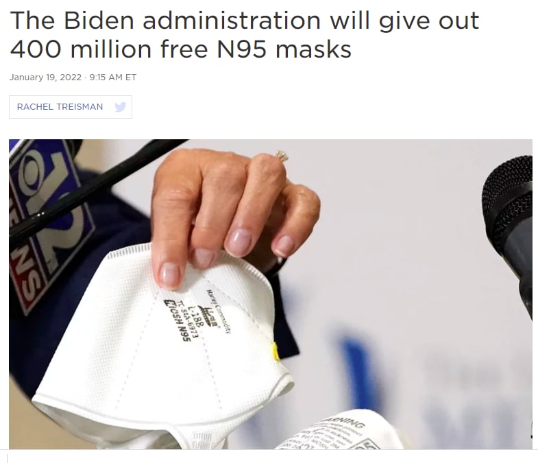 Steven Kirsch - Jan 31st 2022 5:24pm EST ICYMI, the Biden administration is giving out 400 million free N95 masks. Here’s the offer: Here’s what they aren’t telling you: An N95 respirator will “work” for around 2 hours in a hospital or similar setting with filtered air An N95 respirator will “work” for around 30 min outdoors So if 200M Americans receive two […]