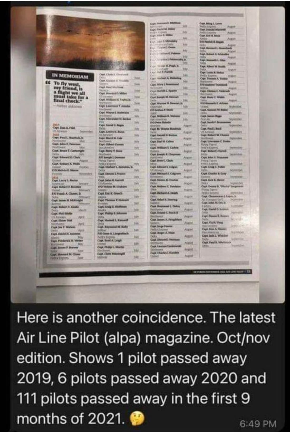 Yesterday, I received the following text message referring to an article in the Air Line Pilot Association (ALPA) magazine: OK, so at first glance, that looks pretty incriminating, doesn’t it? Especially the huge number of deaths in July (39) as compared to a pre-jab month like January (1) or March (1). Note that you can’t […]