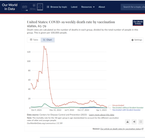 Steven Kirsch - Oct 24th 2024 6:19pm EDT I just went to OWID and printed out this graph for ages 65-79 so it isn’t age confounded. It shows clearly that if you are vaccinated for the COVID vaccine, you are up to 14X less likely to die from COVID than if you are unvaccinated. So it sounds like a super compelling reason to […]