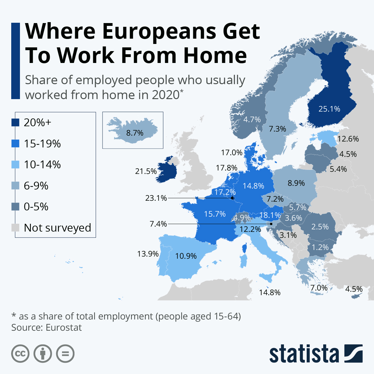 ZeroHedge - May 20th 2021 4:15am EDT Where Europeans Get To Work From Home The social distancing measures introduced in response to the Covid-19 pandemic has forced many people to work from home and accelerated the trend of remote working. Eurostat have released some interesting new data showing the share of employed people aged between 15 and 64 in Europe who usually do home office. […]