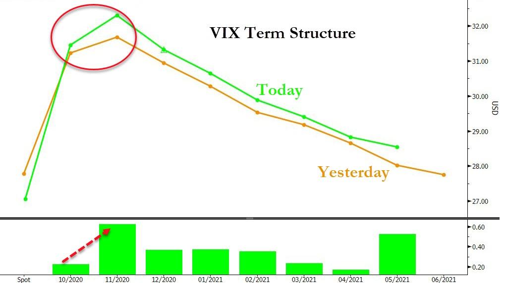 ZeroHedge - Sep 22nd 2020 4:01pm EDT Stocks, Silver, Bonds, Black Gold, & Greenback Bid But VIX Election-Bump Worsens Tyler Durden Tue, 09/22/2020 – 16:01 Despite the apparently clarifying headlines regarding the Senate moving forward with a SCOTUS nomination, uncertainty around the election actually increased quite notably today (even as spot VIX slipped lower)… Source: Bloomberg Source: Bloomberg It’s “Shut Up and […]