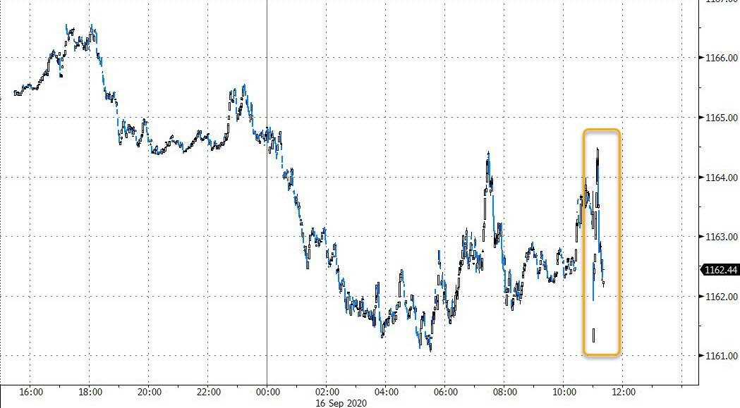 ZeroHedge - Sep 16th 2020 2:21pm EDT Stocks Panic-Bid On Fed’s Reassuringly Dovish Statement, USD & Bonds Shrug Tyler Durden Wed, 09/16/2020 – 14:21 The dollar is practically unchanged… Bond yields are practically unchanged… Gold is very modestly higher… But stocks are panic bid… And all on the back of nothing new at all from The Fed other than reassuring lower rates […]