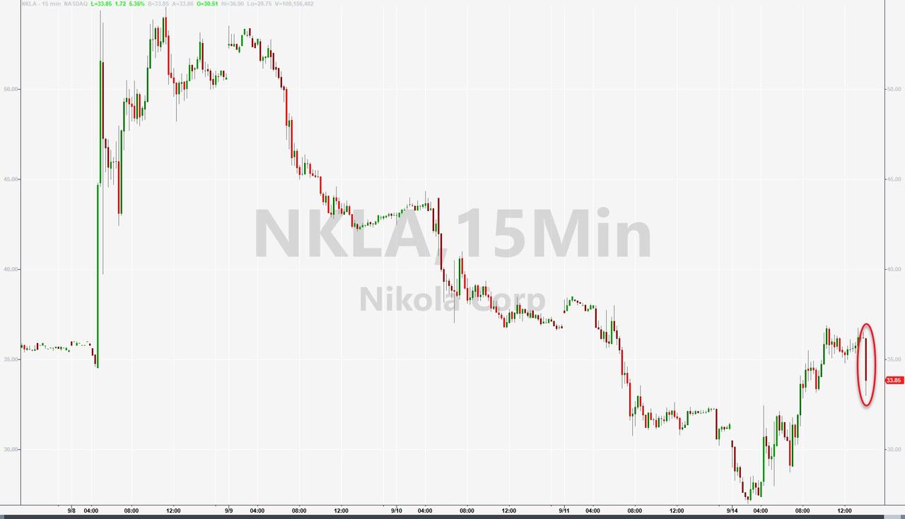 ZeroHedge - Sep 14th 2020 5:08pm EDT Nikola Slides On Report SEC Is Examining Hindenburg’s Fraud Allegations Tyler Durden Mon, 09/14/2020 – 17:08 In a rollercoaster day for Nikola, the company’s shares slumped after the close following a Bloomberg report that the SEC has started an examination of the company to “assess the merits” of Hindenburg’s allegations that the company is an […]