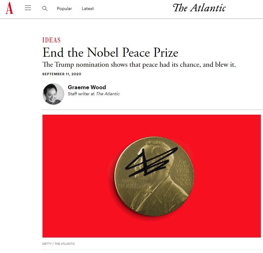 ‘The Atlantic’ Escalates Its TDS-Tantrum, Urges End To Nobel Peace Prize After Second Trump Nomination