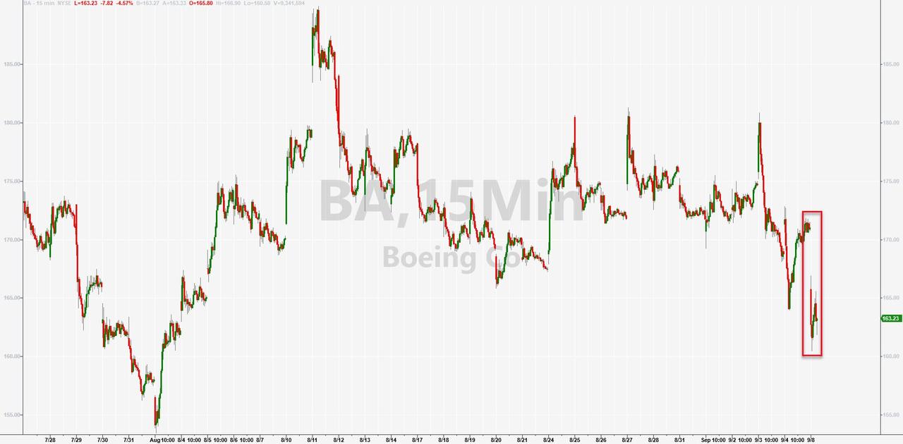 ZeroHedge - Sep 8th 2020 11:29am EDT Boeing Shares Slide On Reports Of Dreamliner Delivery Slowdown Over Design Flaws Tyler Durden Tue, 09/08/2020 – 11:29 Boeing shares are down 4.5% on Tuesday morning following a new report via WSJ, published a day earlier during the Monday Labor Day holiday, detailing new troubles that have emerged for the Boeing 787 Dreamliner. Now, Boeing has […]