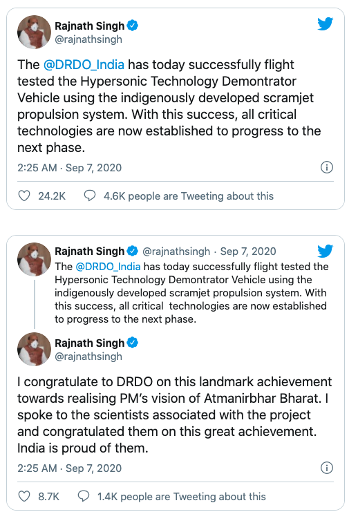 ZeroHedge - Sep 7th 2020 10:30pm EDT India Test Fires ‘NextGen Hypersonic Weapon’ As Border Tensions With China Surge Tyler Durden Mon, 09/07/2020 – 22:30 With a military standoff between India and China intensifying, the Indian military has decided to increase geopolitical instabilities in the region, on Monday, as it test-fired a new class of ultra-modern weapons that can travel at hypersonic speeds. The Defence […]