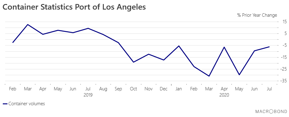 ZeroHedge - Sep 7th 2020 9:00pm EDT “No Recovery In Sight”: Container Volumes At The Port Of Los Angeles Flatline Tyler Durden Mon, 09/07/2020 – 21:00 Submitted by Christopher Dembik, head of macro analysis at Saxo Bank In today’s edition, we focus once again on global trade and the U.S. economy in these unusual circumstances. One of our favorite coincident trade indicators […]