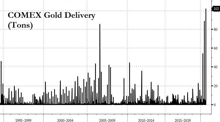 ZeroHedge - Aug 2nd 2020 9:20am EDT A Record Amount Of Physical Gold Was Just Delivered On COMEX, Here’s Why Tyler Durden Sun, 08/02/2020 – 09:20 Traders on the main gold futures exchange in New York just issued the largest daily physical delivery notice on record. In the latest sign of how the market’s norms have been upended by the price disconnect […]