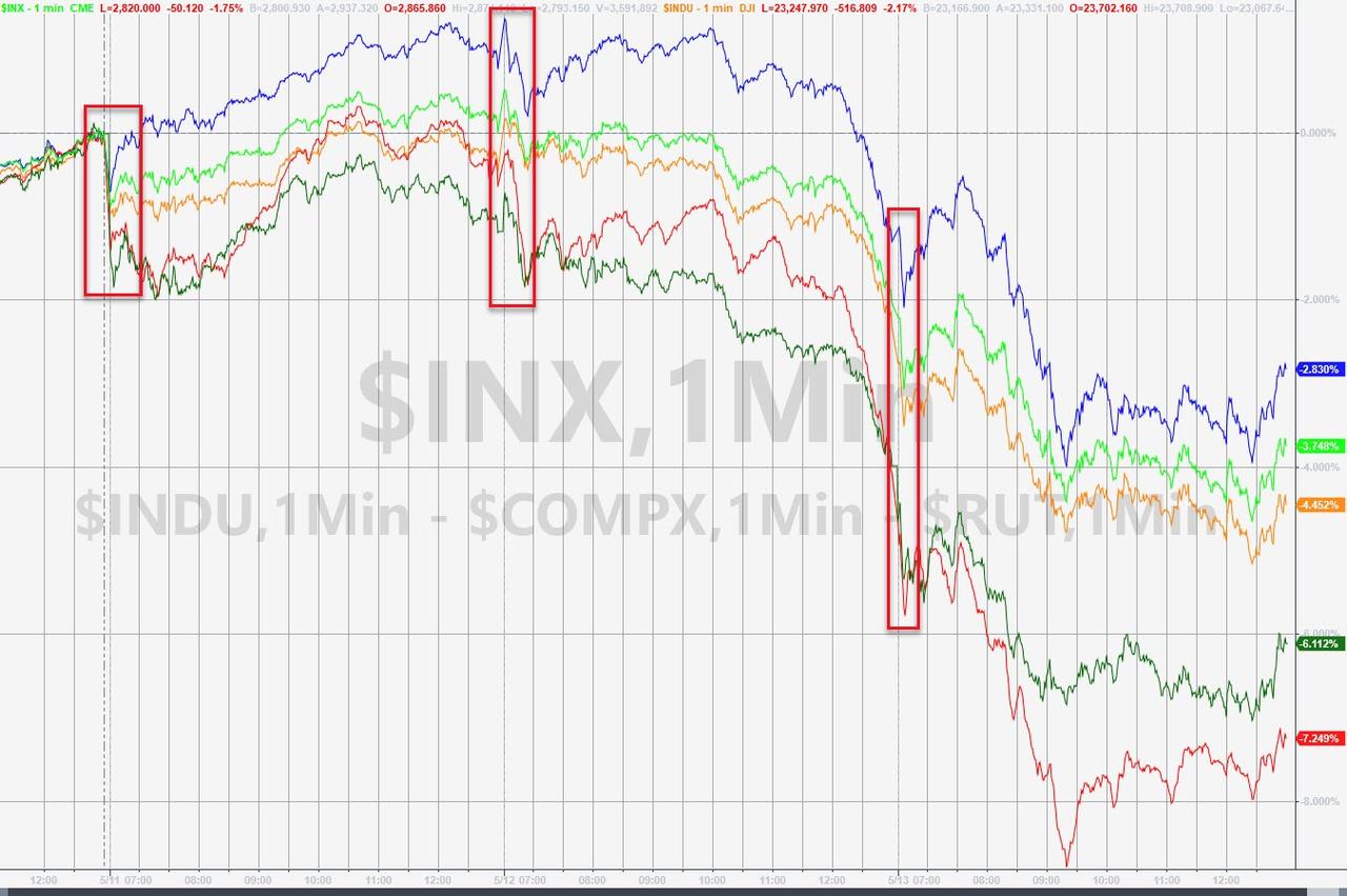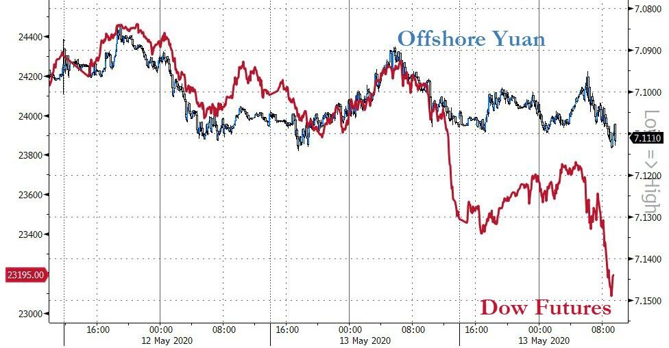 ZeroHedge - May 13th 2020 4:00pm EDT Stocks & Bond Yields Tumble On Beijing Blowback, A Fearful Fed, & Billionaire Alarm Bells For the second day in a row, it was not pretty in equity market land… Small Caps are worst on the week, followed by Trannies with Nasdaq best but still down hard… The mega-techs begin to catch down to the […]