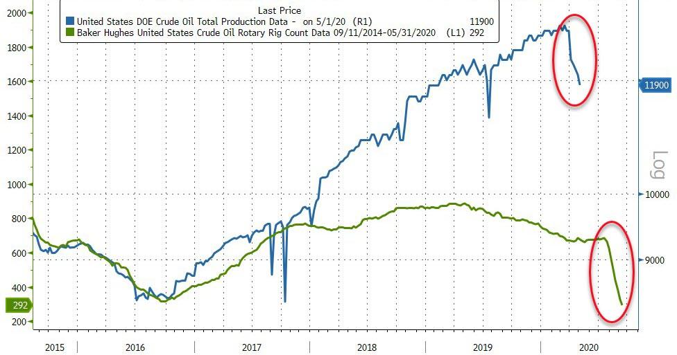 ZeroHedge - May 12th 2020 4:36pm EDT WTI Holds Big Gains Despite Bigger-Than-Expected Crude Build Oil prices rallied (despite equity weakness) to their highest since early April today with WTI tagging a $26 handle after the Energy Information Administration revised down its 2020 and 2021 crude output forecasts in its monthly Short-Term Energy Outlook. “Production is indeed dropping and it might stay down for […]