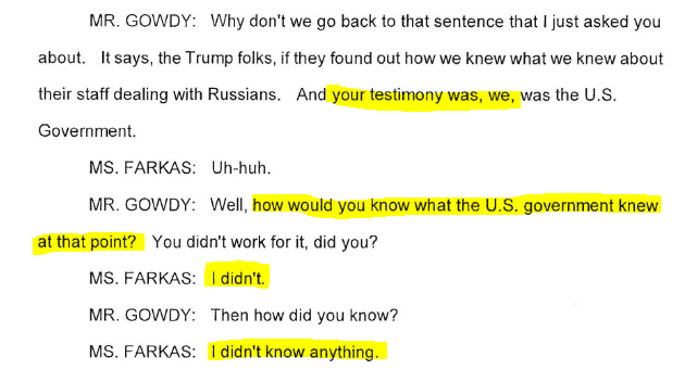 ZeroHedge - May 9th 2020 11:55am EDT Did Obama Defense Deputy Lie To Protect Her Fraudulent Russiagate Sources? Newly declassified congressional transcripts from the Russia investigation include testimony from former Obama administration defense official, Evelyn Farkas, who testified under oath that she lied in an MSNBC interview when she claimed to have evidence of “the Trump staff dealing with Russians,” and said […]