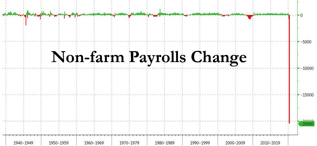 ZeroHedge - May 8th 2020 8:33am EDT Worst Jobs Report In History: 20.5 Million Jobs Lost As Unemployment Rate Hits Record 14.7% While economic fundamentals ceased to matter about a month ago when the Fed went nuclear and not only injected trillions in the bond and repo market, but also directly backstopped the corporate bond market (with many expecting it will do […]