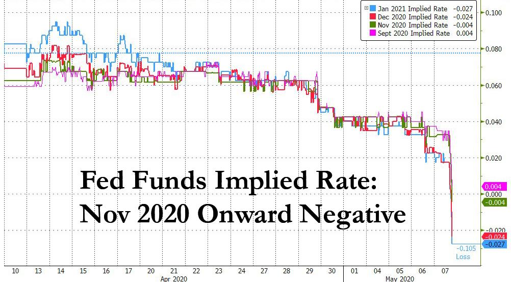 Powell Needs To Immediately Address Negative Rates Or He Will Lose Control Today was a historic day, not for the latest algo-driven meltup in stocks, but because for the first time ever, fed fund futures priced in negative rates, first in January 2021 and shortly after, as recently as November 2020. In response to the […]