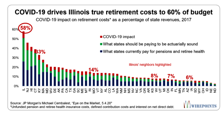 ZeroHedge - May 5th 2020 7:45pm EDT Illinois’ True Retirement Costs Surge Near 60% Of The Budget Authored by Mike Shedlock via MishTlak, JPMorgan’s latest pension graphic captures so much of what’s wrong with Illinois’ collapsing finances… Illinois was in an actuarial mess long ago. Covid-19 makes it harder to ignore says Wirepoints. The chart by Michael Cembalest shows Illinois was paying about […]