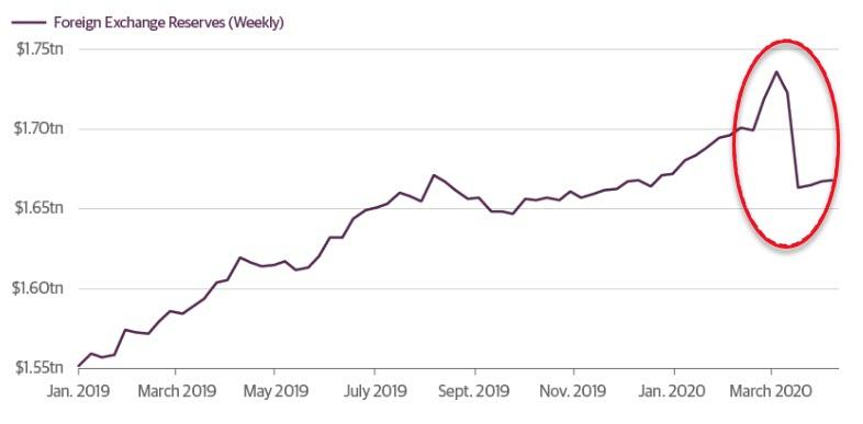 ZeroHedge - May 3rd 2020 2:50pm EDT Global US Dollar Shortage Rises As Emerging Markets Lose Reserves Authored by Daniel Lacalle, The pace at which emerging market economies are losing FX reserves is staggering. In March, emerging economies lost around $1.5 billion in foreign exchange reserves per day, according to Bloomberg. Saudi Arabia alone lost $27 billion in reserves in March, according to […]