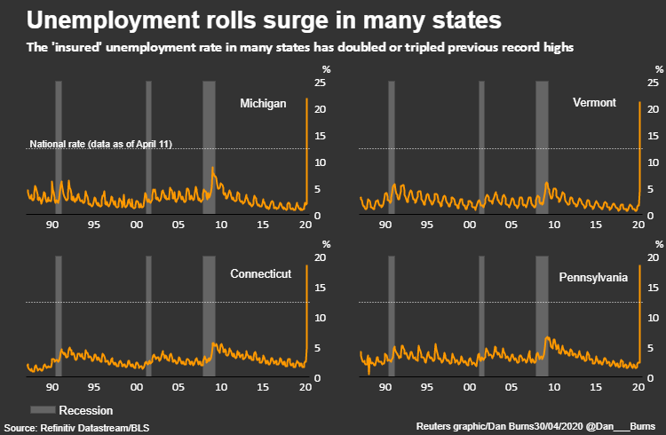 ZeroHedge - May 2nd 2020 8:45am EDT Distribution Delays In Unemployment Benefits Seen In Several States Millions of Americans have lost their jobs in the past six weeks, the fastest destruction of the labor force in history, effectively wiping out every job created post-GFC. About one in five people have filed for unemployment benefits, suggesting coronavirus lockdowns have severely damaged the economy. New […]