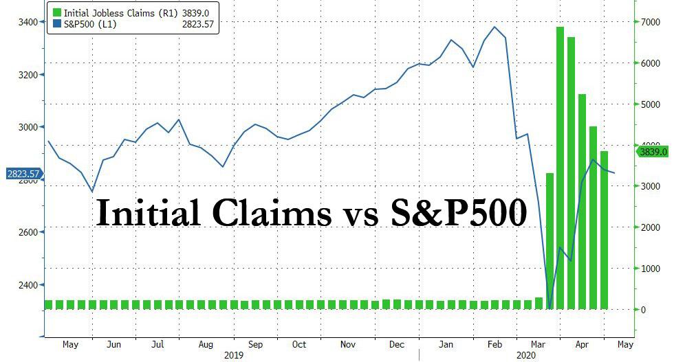 ZeroHedge - May 1st 2020 2:40pm EDT 30 For 30: 30 Million Jobless Claims vs. 30% Gain in Equity Prices Submitted by Joseph Carson, Former Chief Economist of Alliance Bernstein The great divide between finance and the economy rolls on. In the past 6 weeks, jobless claims have increased by 30 million, while the S&P 500 index has increased by more than […]