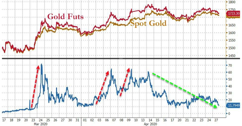 ZeroHedge - Apr 27th 2020 5:20pm EDT Physical Gold Premiums Soar To Highest Since Crimean Conflict As Congressman Questions COMEX The gold market remains chaotic with physical (geographical) shortages, increasing physical demand, paper squeezes, retail interest soaring, and now congressmen raising concerns with regulators. First some good news (ish) – The last few weeks have seen the huge premium for between COMEX […]