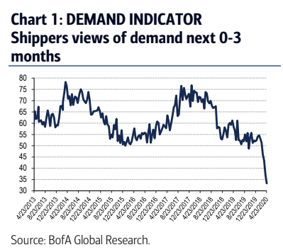 ZeroHedge - Apr 27th 2020 10:30am EDT Freight Trucking Demand Plunges To All Time Lows; Rates Crash And Industry Grapples With Lockdown Bank of America’s Truckload Diffusion Indicator for shippers continues to paint a grim picture not only of freight, but of the overall economy. Put simply, the pandemic has led to record lows and some of the ugliest survey numbers since the […]