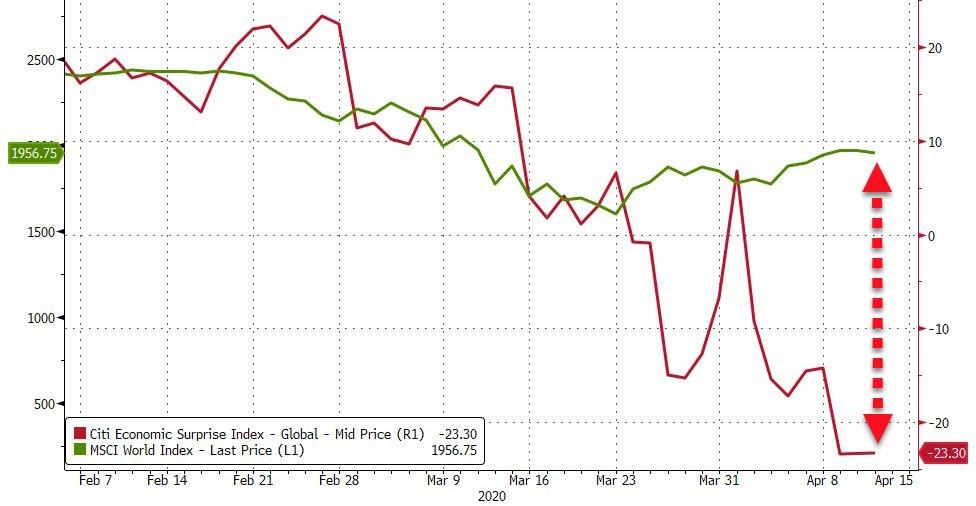ZeroHedge - Apr 14th 2020 4:00pm EDT Gold Jumps, Crude Dumps As Nasdaq Squeezes To Best Run In 5 Months The only thing driving stock markets right now… Markets right now: pic.twitter.com/uj8Bpj3fMd — Masa Capital (@MasaSonCap) April 13, 2020 Because fun-durr-mentals aren’t… Top-down macro… Source: Bloomberg Bottom-up micro… Source: Bloomberg …and neither is virus optimism? Source: Bloomberg And, as Steve Liesman noted: […]