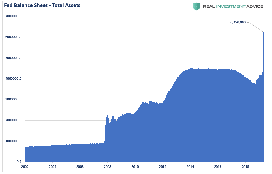 Is The “Debt Chasm” Just Too Big For The Fed To Fill? Authored by Lance Roberts via RealInvestmentAdvice.com, Over the last month, the Federal Reserve, and the Government, have unleashed a torrent of liquidity into the U.S. markets to offset a credit crisis of historic proportions. Here is a list of programs already implemented which […]