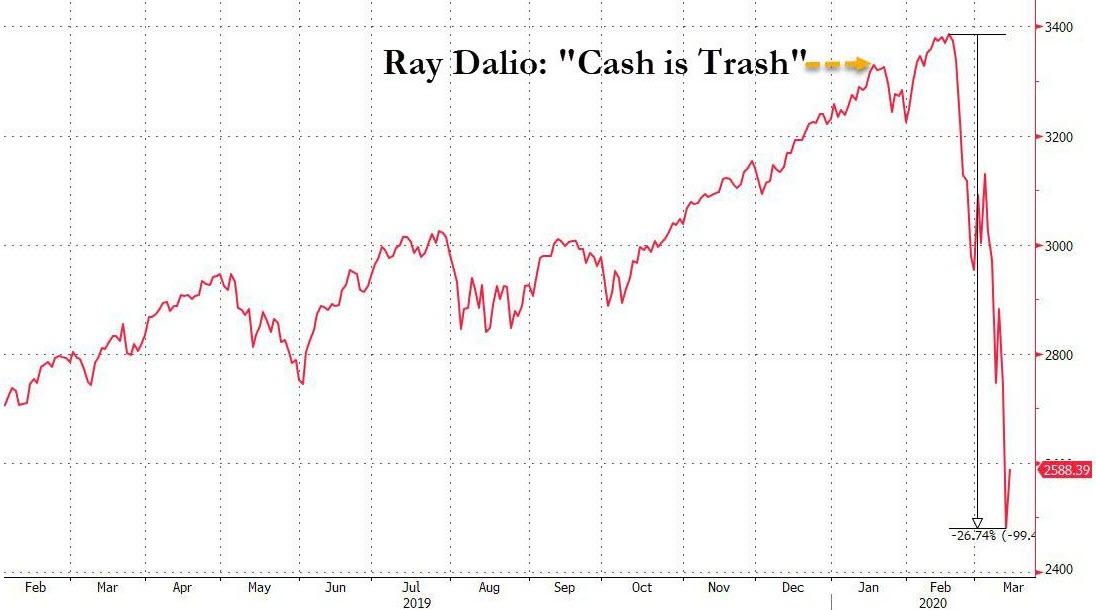 ZeroHedge - Apr 8th 2020 9:40am EDT Ray Dalio Still Thinks “Cash Is Trash”, But… A brief history of the world’s largest hedge fund manager’s worst…call…ever… On a cold January day in Davos in 2020, billionaire hedge fund manager Ray Dalio made the now infamous three word statement that “cash is trash.” Ray Dalio: “You can’t jump into cash. Cash is trash.” […]