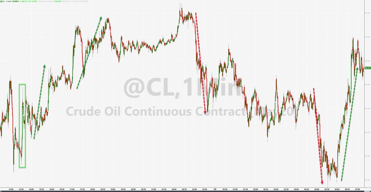 ZeroHedge - Apr 8th 2020 10:38am EDT Oil Prices Tumble After Record Inventory Builds, Collapse In Demand Oil prices have been on a vicious rollercoaster overnight, surging (oddly) after API reported US inventories rose by almost 12 million barrels last week (while those in Europe grew by a similar amount, according to data provider Kayrros); then tumbling as Europe opened, only to be panic-bid […]