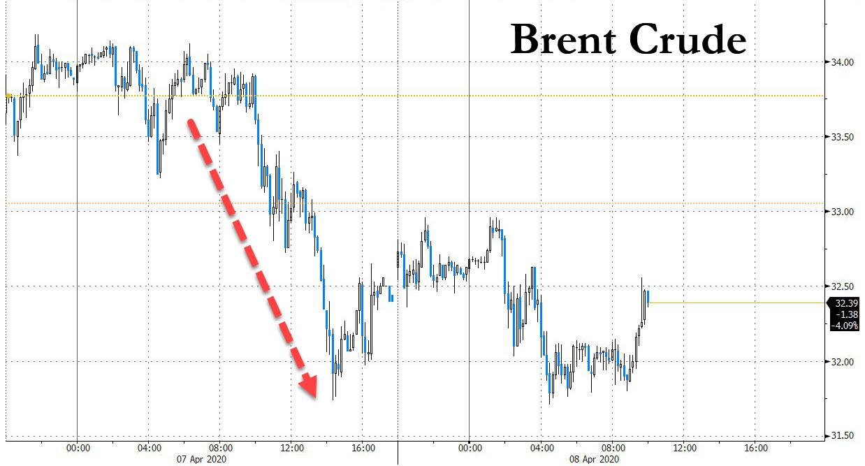 ZeroHedge - Apr 8th 2020 10:46am EDT Oil Deal On Verge Of Collapse As Russia Balks At Proposed US “Production Cut” As oil traders look with dread and fear to tomorrow’s OPEC+ teleconference one day after crude oil tumbled amid speculation that the production cut standoff will not be resolved… … there was a sliver of hope that oil prices may rebound […]