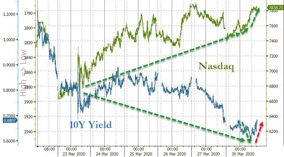 ZeroHedge - Mar 30th 2020 4:01pm EDT Stocks Bid Into Month-End Despite Americans’ Unprecedented Scramble For Cash Amid an ever-escalating guess at the size of pension fund re-allocations funds (latest we saw was $150 billion) into month-end, both bonds and stocks were bid early on today, but as the day wore on, bonds weakened as stocks gained (driven by record IG issuance-driven […]