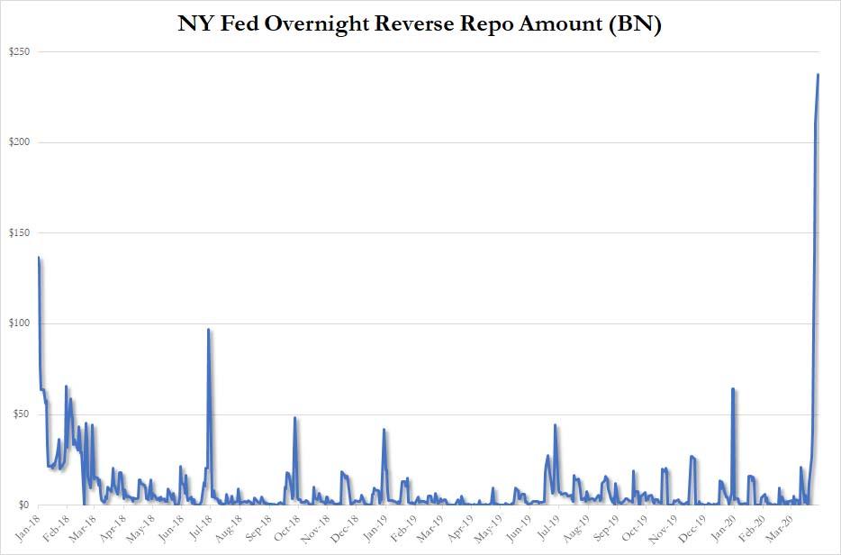 ZeroHedge - Mar 30th 2020 7:05pm EDT The Flood Begins: Treasury To Sell Over A Quarter Trillion Bills In 48 Hours Having noticed the Treasury shortage forming in the bond market, which as we observed emerged both across the broader curve as manifested by the surging demand for the Fed’s reverse repo… … as well as the unprecedented demand for “cash-like” T-Bills […]