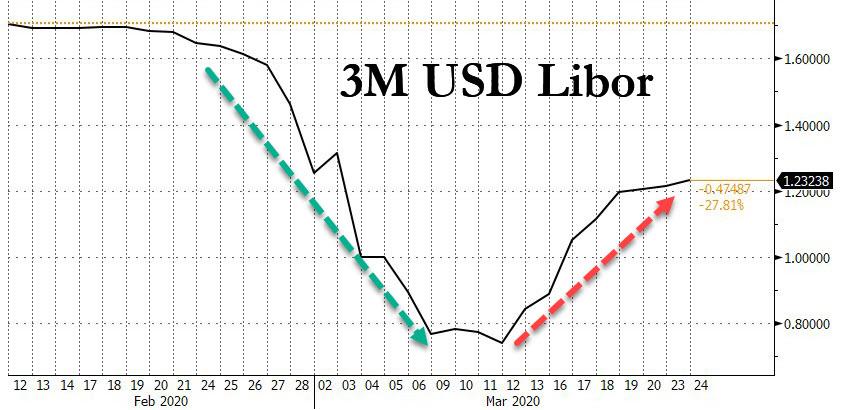 ZeroHedge - Mar 26th 2020 1:40pm EDT Bizarre Rise In Libor Prompts Questions About One Or More Banks In Trouble Something odd happened late last week: with the Fed unleashing an unprecedented bazooka of liquidity in the market, cutting rates to zero, and backstopping virtually every security, one of the most closely watched credit market indicators did the opposite of what it […]