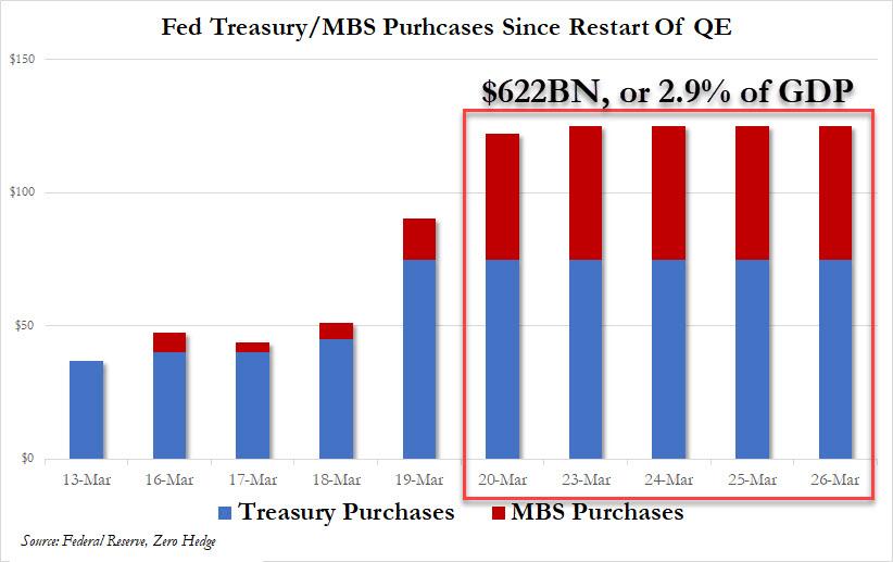 ZeroHedge - Mar 26th 2020 3:30pm EDT “I’ve Never, Ever, Ever Seen Anything Like This Before” With the Fed buying $622 billion in Treasury and MBS, a staggering 2.9% of US GDP, in just the past five days… … any debate what to call the current phase of the Fed’s asset monetization – “NOT NOT-QE”, QE4, QE5, or just QEternity – can […]