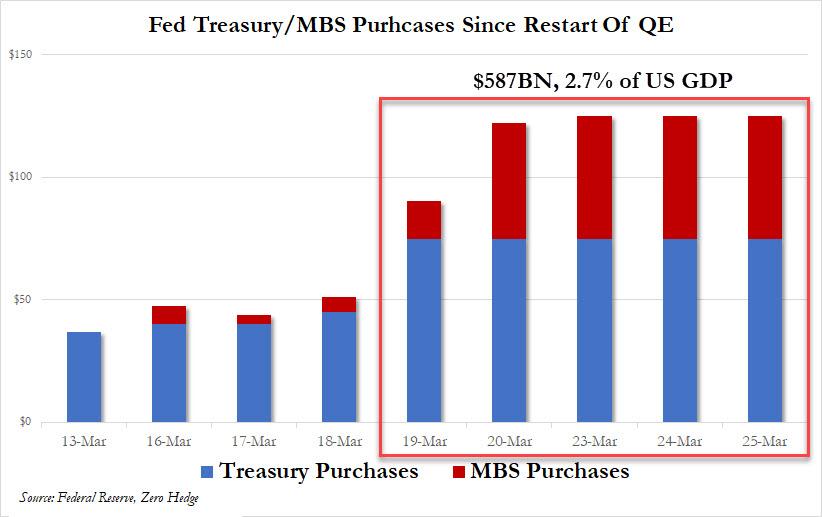 ZeroHedge - Mar 25th 2020 10:10pm EDT Fed Buys $587 Billion In Bonds In Past Week, 2.7% Of GDP, Just As Foreign Central Banks Start To Liquidate Having moved from “Not QE” (or QE4 as it was correctly called), to the $750BN QE5 which came and went with the blink of an eye, to the Fed’s open-ended and unlimited QEnfinity in the […]