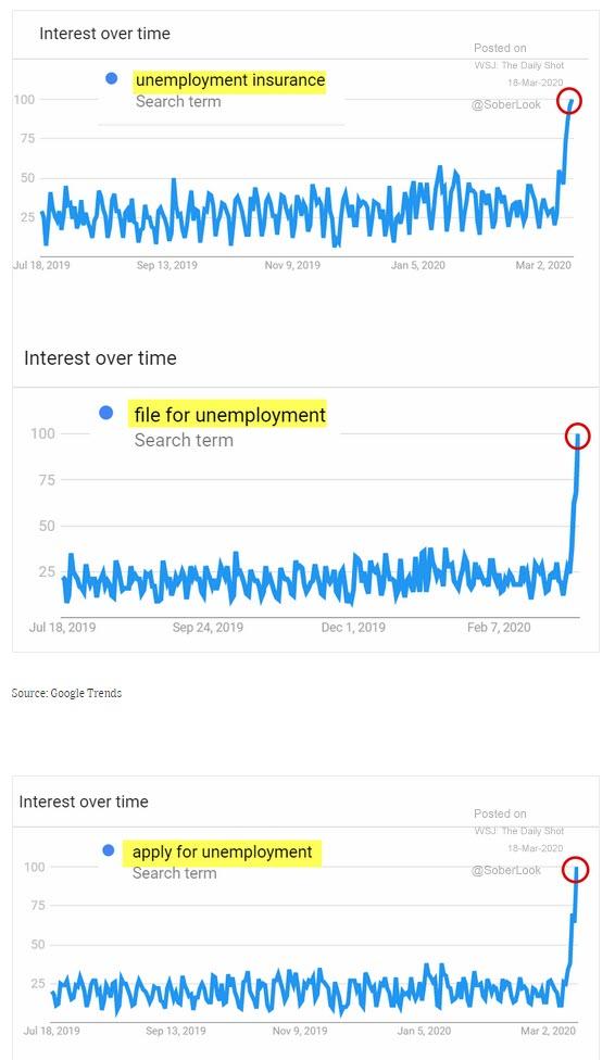 ZeroHedge - Mar 19th 2020 8:34am EDT Jobless Claims Explode Higher As Virus-Impact Begins To Hit Main Street In the lead up to this morning’s must-watch initial jobless claims data, searches for unemployment-related services have exploded as national lockdowns have led to mass layoffs across both the services and manufacturing sectors. And while analysts expected a modest 220k jump, the print came […]