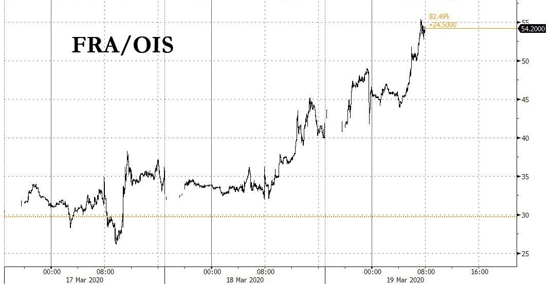 ZeroHedge - Mar 19th 2020 8:18am EDT Sheer Panic: Futures Surge, Tumble, Surge, Tumble… First the good news: for the first time in a week, there were no overnight limit up/down trigger halt in the S&P500 future. Now, the not so good news: the global dollar margin call/short squeeze escalated even more overnight, resulting in total chaos in Asia, as multiple regional […]