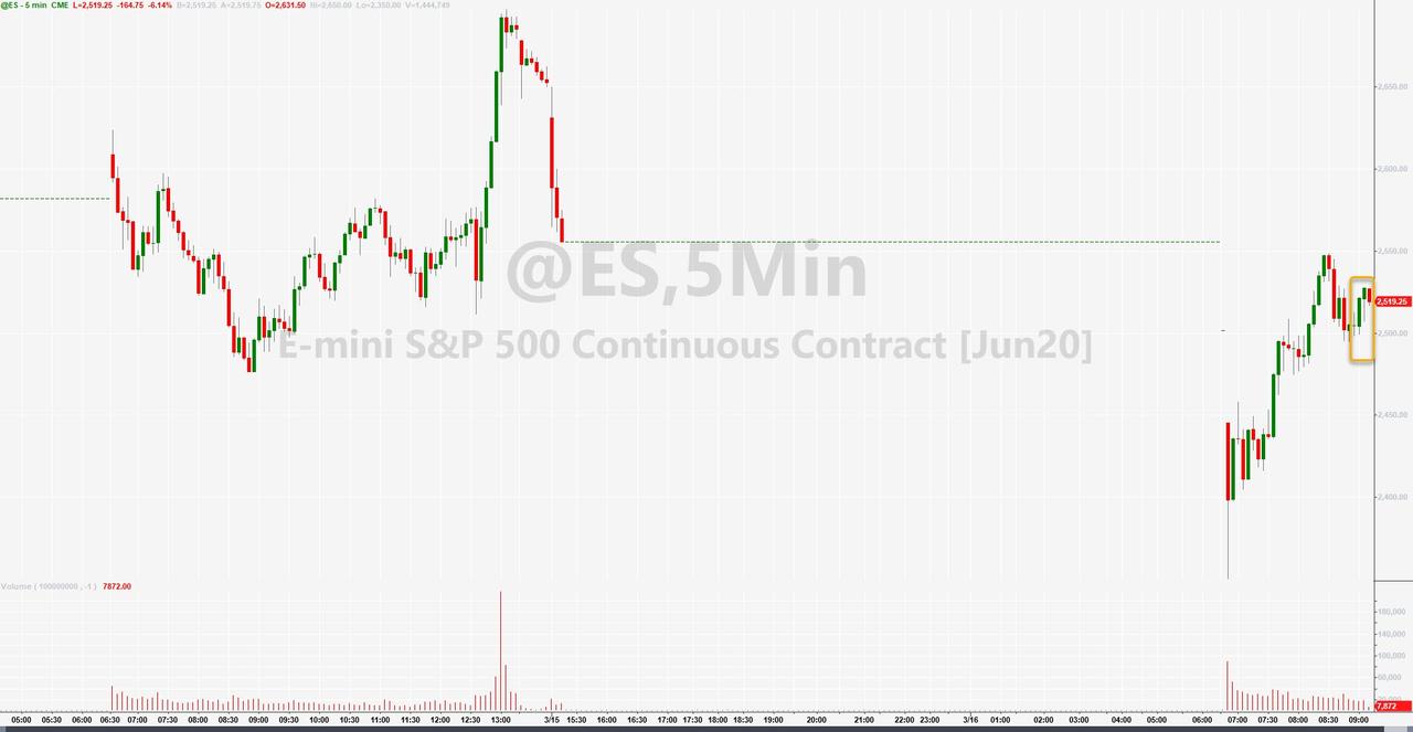 ZeroHedge - Mar 16th 2020 9:33am EDT Circuit-Breaker Halts US Stock Markets At Open 15 Mins US equity markets are opening down extremely hard this morning after futures traded limit-down from shortly after last night’s open. @GreekFire23 summed up the stock market today best so far: 9:30am : Ding Ding Ding! Trading open! 9:30:00001am: Halted The 10% surge in stocks to end […]