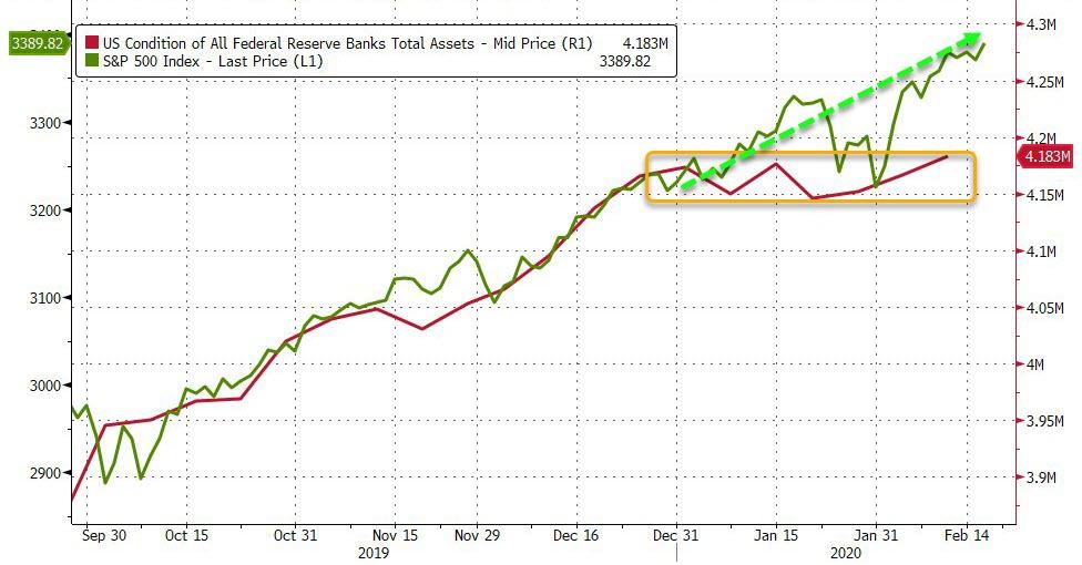 ZeroHedge - Feb 19th 2020 4:01pm EST Stocks Up, Bonds Up, Gold Up, Dollar Up, Oil Up, Virus-Death-Count Up! Another day, another new record high in stocks as the Powell-Put is well and truly priced in to save the world no matter what – global pandemic, no problem, hold my beer… the assumption seems to be that The Fed will print again […]