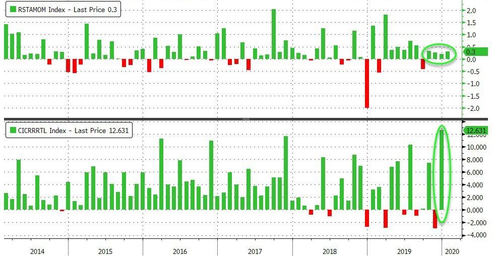 ZeroHedge - Feb 14th 2020 8:38am EST Headline Retail Sales Steady In January, Control Group Disappointment Sparks GDP Growth Anxiety After December’s massive surge in consumer revolving debt (i.e. credit card spending), one might have expected a retail spending ‘hangover’ of sorts in January but headline data came in up 0.3% MoM, as expected. Source: Bloomberg Core retail sales (es autos/gas) rose […]
