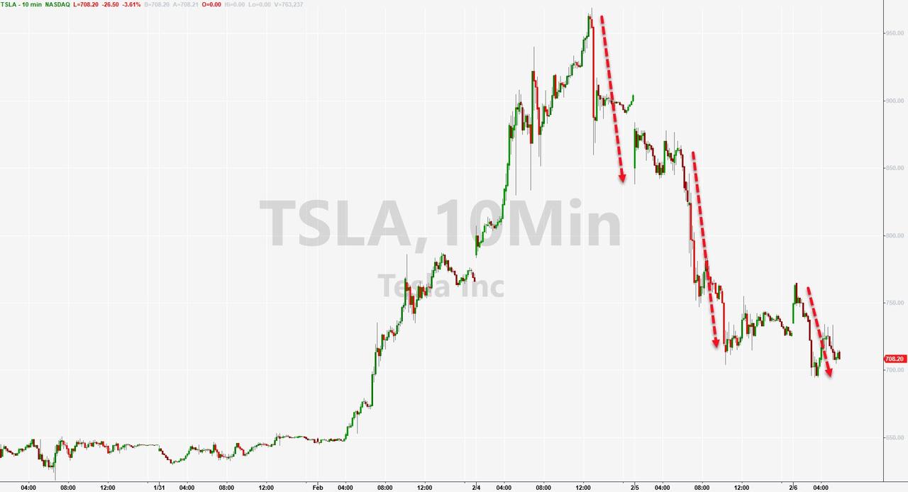 ZeroHedge - Feb 6th 2020 8:50am EST Tesla Shares Plunge Again As Company Says It Will Shutter China Stores Due To Coronavirus Following yesterday’s record 17% drop, Tesla shares are down again in pre-market trading on Thursday after the company announced it is temporarily closing stores in mainland China as of February 2. Tesla shares dropped another 5% in early trading Thursday […]