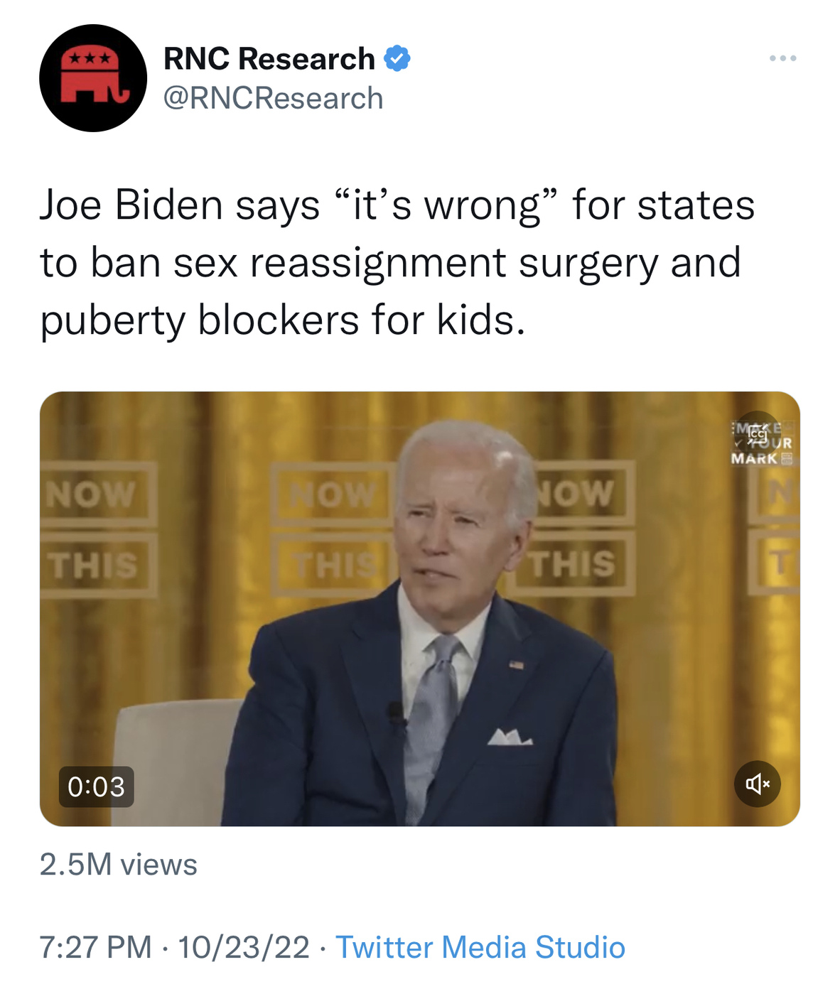 Libs of TikTok - Oct 24th 2022 1:01pm EDT Libs of Tik Tok on Gab: ‘Just so we’re clear- the official Democratic party position now is that puberty blockers and sex reassignment surgery for kids is good.’