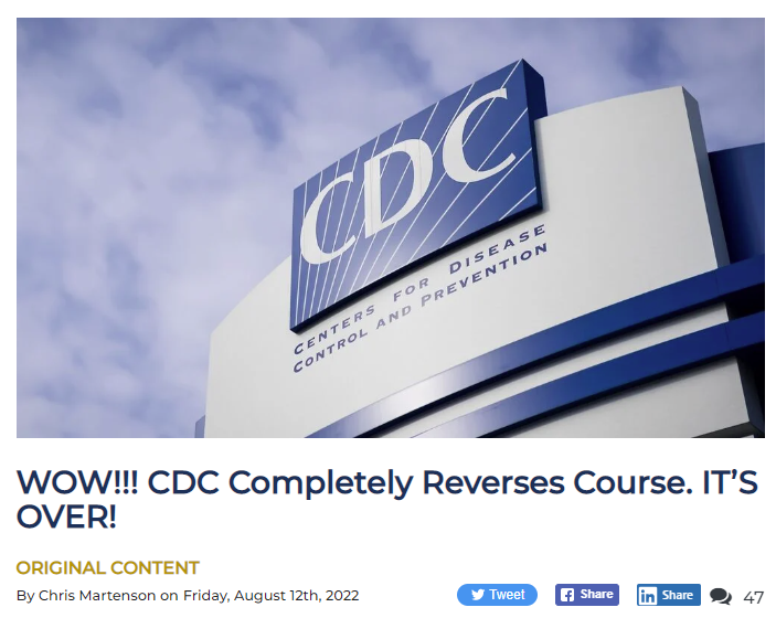 Steven Kirsch - Aug 13th 2022 4:43am EDT The CDC has been reliably wrong on just about every piece of advice related to COVID. Something weird just happened. Now some of the things they are saying are…. wait for it… actually correct. Boy, I can’t believe I just wrote that. If they keep this up, I may have to shutter my Substack and […]