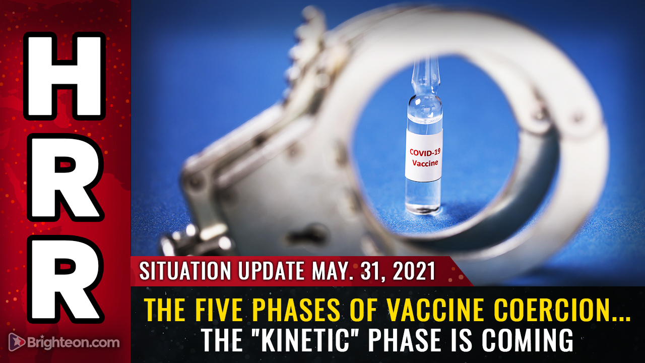 Natural News - May 31st 2021 2:30pm EDT (Natural News) With new information provided by a contact in the federal government, I’ve been able to further refine the escalation hierarchy of vaccine compliance that’s being pursued by the Biden regime. There are five distinct phases to this escalation: Phase 1 – Voluntary (pushed by media propaganda, paying off social media influencers, doctors, etc.)…. […]
