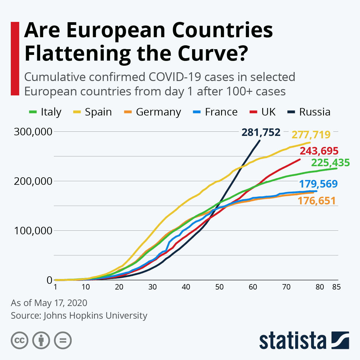 ZeroHedge - May 20th 2020 1:00am EDT Are European Countries Still ‘Flattening The Curve’? Tyler Durden Wed, 05/20/2020 – 01:00 Over the weekend, Russia has become the country with the second-most cumulative confirmed cases in the world after the U.S. The country overtook Spain’s case numbers on Sunday. The global coronavirus pandemic is being contained in Western European countries, as Statista’s Katharina […]