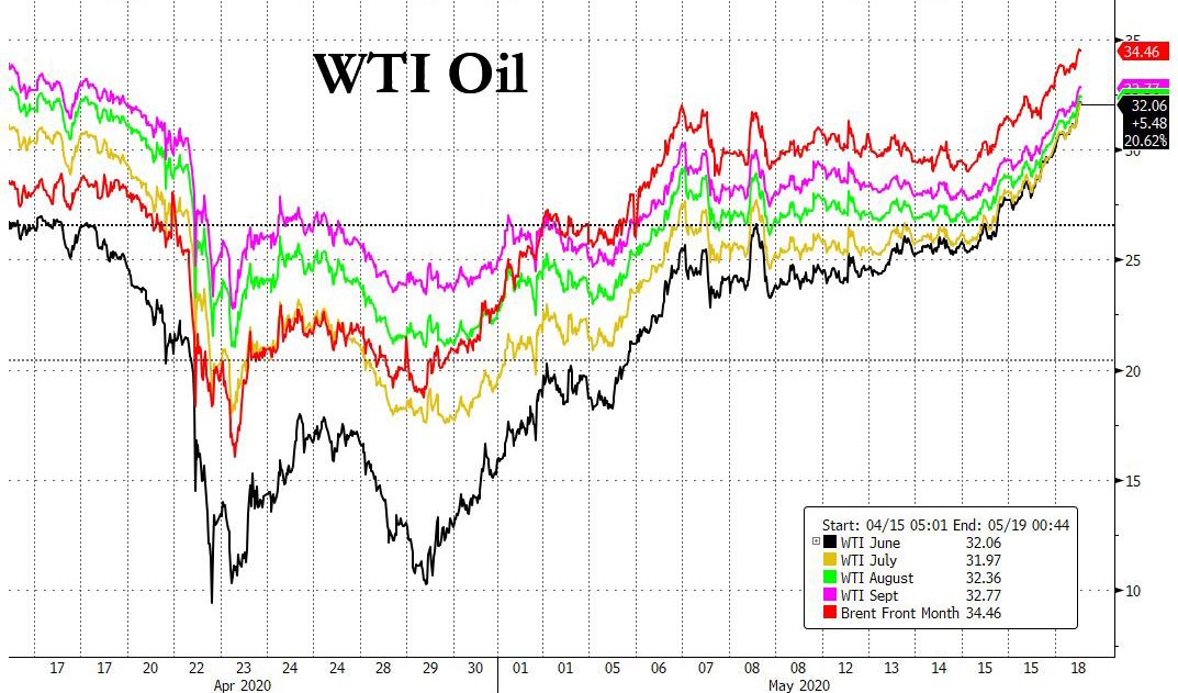 ZeroHedge - May 18th 2020 8:53am EDT Oil Soars, Prompt WTI Contango Disappears As Chinese Oil Demand “Almost Back To Pre-Crisis Levels” Tyler Durden Mon, 05/18/2020 – 08:53 After plunging more than 20% in Q1 due to the economic shutdown from the coronavirus pandemic, Chinese oil demand is now “all but back to levels last seen before Beijing imposed a national lockdown […]