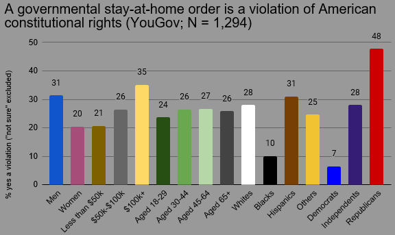 Occidental Dissent - May 17th 2020 11:02pm EDT I hadn’t seen this article until it was brought up in the comments. The poll is devastating for truthers and conspiracy theorists. Unz.com: Are stay-at-home orders infringing on constitutional rights? Total: 64% say no and 23% say yes. Men: 59% say no, 27% say yes. Women: 69% say no, 18% say yes. Whites: 64% say […]